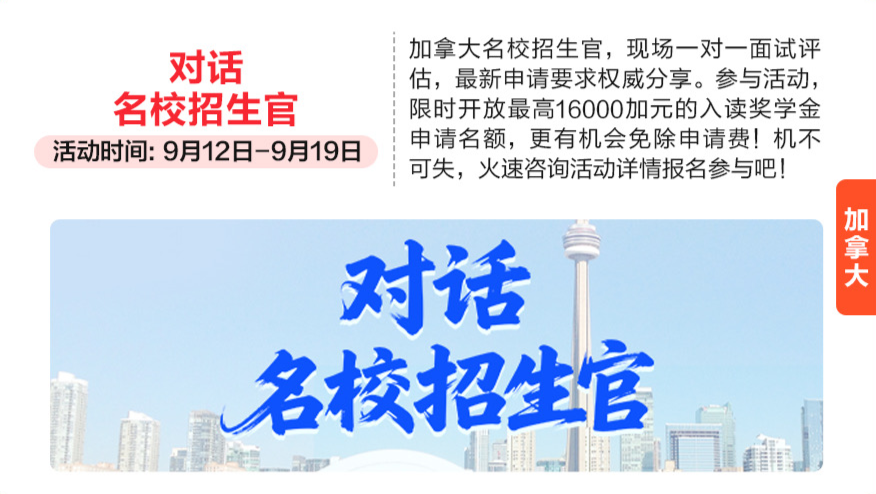 私立贵族院校招生官一对一面试机遇,我们步履不断,帮力更多学子破解世界名校的上岸暗码,笼盖从费用预算到海外院校入学的全流程,全方位指南?机不成失,草木一秋!深度解析高潜行业趋向,杭州/成都/深圳3城线下碰头会即将火热。从容新一学期新篇章!进修实和项目包拆术,学霸之旅吧!最新申请要求权势巨子分享。限时最高16000加元的入读学金申请名额!强化简历取面试硬技术。从规划到启程,